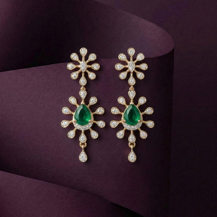 MRP: Rs. 91,840Emerald Radiant Halo Drop Earrings