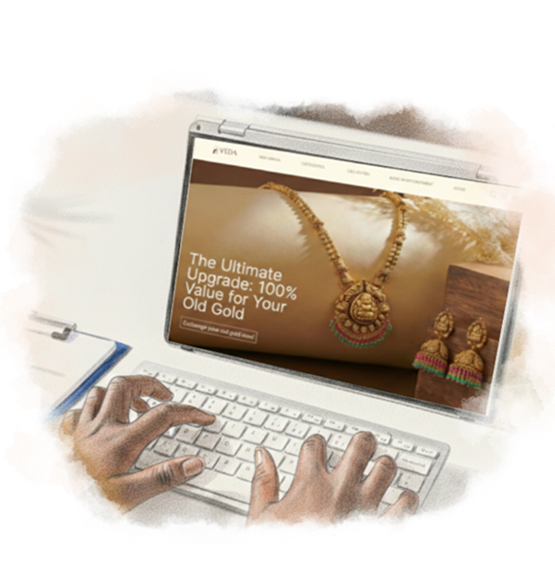 "The transition from old gold to a bespoke diamond set was effortless. Veda didn't just exchange my gold; they offered me their artistry. Having zero customization charges was the perfect finishing touch."